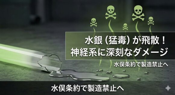水銀は神経系に深刻なダメージを与える神経毒です。地震で蛍光灯が落下し、割れたとしたら?その空間は、有害な水銀蒸気が充満する危険地帯と化します。
